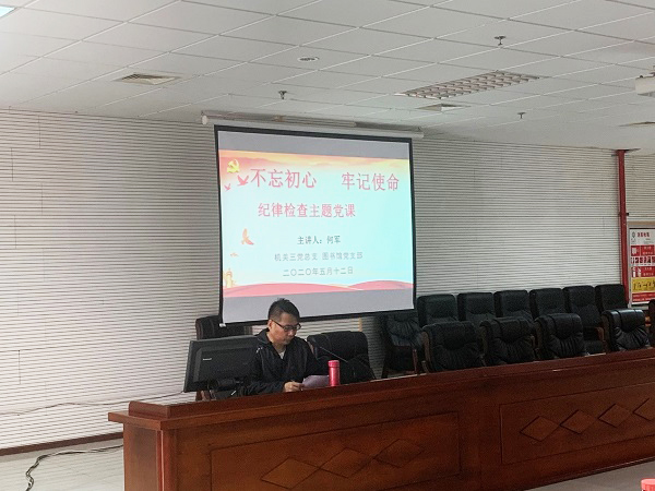 5月12日下午,为贯彻落实习近平新时代中国特色社会主义思想,引导党员从反面典型案例中汲取教训,以案为鉴、警钟长鸣,持续正风肃纪,机关三党总支图书馆党支部全体党员在纪检委员何军带领下集中学习了中共leyu·乐鱼(中国)体育官方网站纪律检查委员会文件《开展了姜国文、赵开江严重违法案警示教育活动的通知》,并观看了《叩问初心》警示教育片第一集。党课完毕后,支部书记张湛睿主持了“立足岗位践初心,携手抗疫担使命”主题党日活动。 纪检...