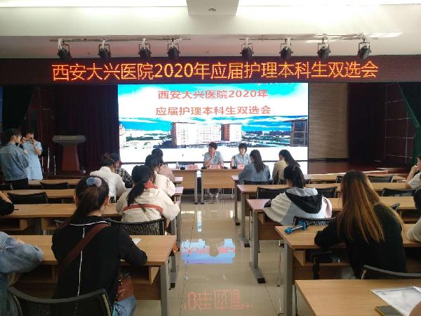 为缓解就业压力,帮助学生早日就业, 5月19日和28日上午,护理学院分两批组织87名毕业生参加西安大兴医院2020年应届护理本科生双选会。 西安大兴医院2020年应届护理本科生双选招聘会现场 招聘会开始,西安大兴医院护理部主任雷晓芬详细介绍了大兴医院的基本情况、职工发展平台、招聘岗位的要求、薪资待遇、个人发展前景等。随后87名学生进行现场面试,同学们积极与院方交流,认真向招聘人员介绍自己的就业意向、在校学习及实习...