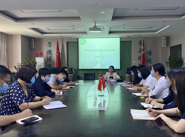 2020年5月25日,药学院党总支党务工作培训会在立德楼E307进行,党总支委员、各支部委员参加了会议。会议由党总支副书记王黎主持。 培训会现场 培训会上,王黎副书记为大家进行了现场授课,带领进一步学习《中国共产党支部工作条例(试行)》,重点解读了党支部书记和委员的工作职责,并以党总支委员的分工和工作实际为例进行了简要讲解,具有较强的指导性和针对性;强调各党支部要严格按照《条例》的标准、要求开展支部工作,...