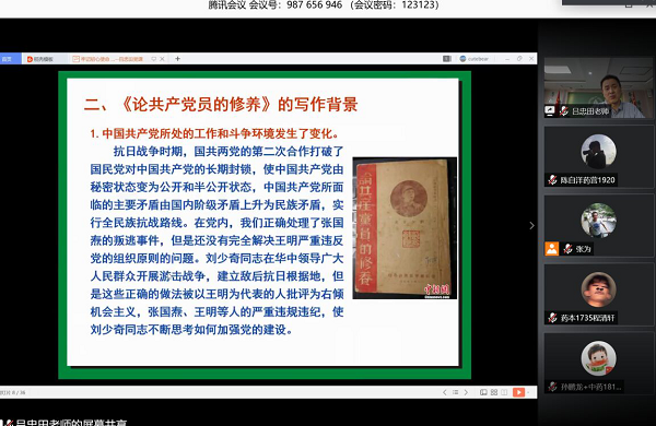 为了增强每一位发展对象的党性意识,强化其党性修养,6月1日至6月3日,按照疫情防控要求,药学院党总支通过腾讯会议的形式开展了三次线上党课培训。参加党课培训的人员有药学院学生党支部发展对象、全体学生党员和学校教职工发展对象。 线上培训(一) 第一次党课培训由学生第一党支部书记袁欣老师讲授,党课内容是重温《共产党宣言》。袁老师以时代背景入手,从什么是《共产党宣言》、《共产党宣言》的内容和为什么要重温《共...
