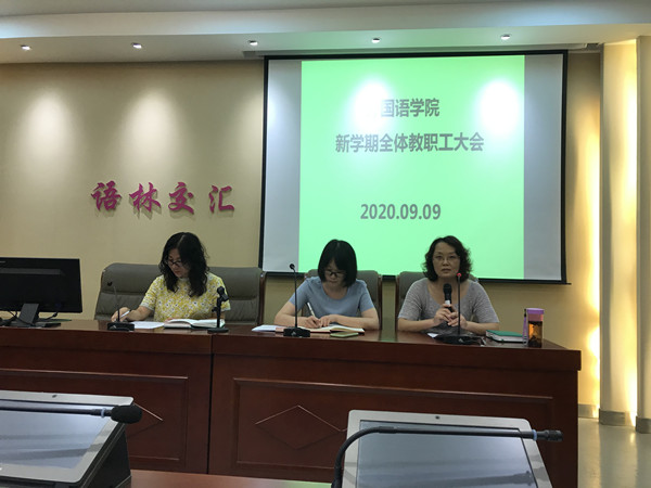 9月9日下午,外国语学院在立行楼5楼学术报告厅召开了新学期第一次全院教职工大会,会议由薛婷副院长主持。党总支书记尚瑜通报了赵正永违纪违法案情况,要求每一位党员干部以案为戒,不断加强自身党性锻炼,严守政治纪律政治规矩,保持党员本色,以实际行动树立清正廉洁、干事创业的良好形象。通报了我校2020年招生情况,并就外国语学院“党建+”和导师制工作做出安排。 党总支书记尚瑜讲话 会议现场 副院长薛英利汇报了外国语...