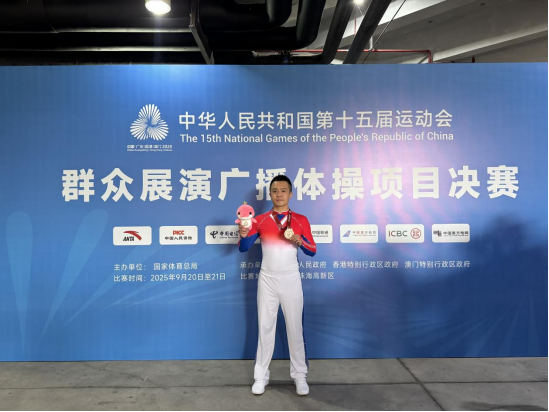 9月20-21日,中华人民共和国第十五届运动会群众展演广播体操项目在广东省珠海市圆满落幕。我校体育部教师闫勇江代表我省参赛并荣获三等奖,为陕西省、为我校赢得了荣誉。全国运动会是我国最高水平的综合性体育赛事,不仅是对竞技体育成果的集中检验,更是推动全民健身、促进体育事业高质量发展的重要平台。广播体操作为我国参与人数最多、普及范围最广的全民健身项目,至今已推出9套标准动作。本次比赛在传统基础上融入诸多创新...