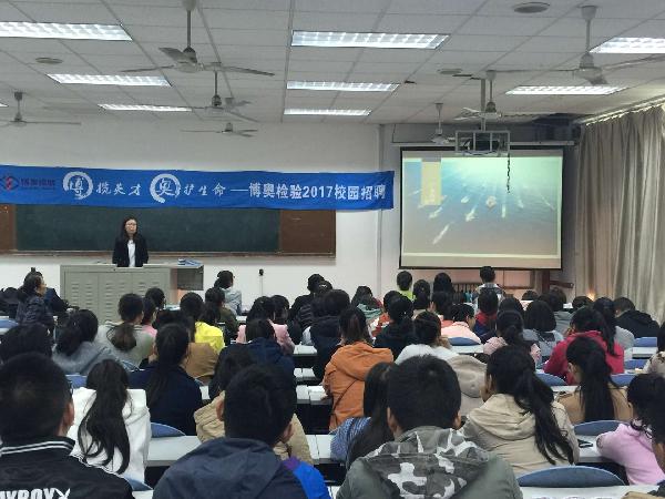 (医学技术系)2016年11月4日下午3点,在leyu·乐鱼(中国)体育官方网站含光校区图书馆三楼阶梯教室举行了北京博奥生物有限公司2017校园招聘宣讲会暨校园招聘会。医学技术系2017届检验本科专业毕业生、系就业专干、实习管理和辅导员老师参加会议,宣讲会由北京博奥生物有限公司人力资源负责人王蒙老师主持。 宣讲会现场 本次宣讲分三个部分进行,第一部分由王老师用生动的视频介绍了北京博奥医学检验所的发展历程。第二部分由实验室主管徐老师对博...