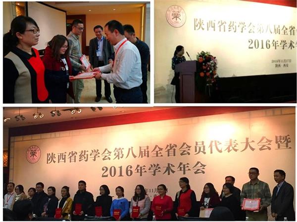 (药学院)2016年11月27日,“陕西省药学会第八届全省会员代表大会暨2016年学术年会”在陕西宾馆隆重召开。本次大会主题是“服务、创新、合作、发展”,来自各专业委员会、地市学会理事,以及相关科研院所、高等院校、医疗机构、医药企业的专家学者、媒体记者280余人参加了本次大会。 药学院50余人参加此次学术年会,并投稿会议论文8篇,中药药理学教研室杨欣和王荣两位博士分别以《中药干姜和花椒挥发油化学成分比较分析》和《...