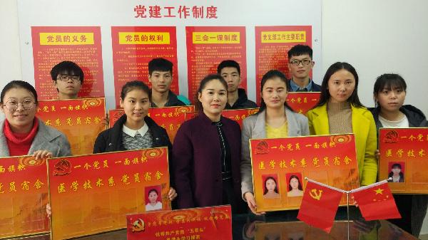 医学技术系学生第一、第二、第三党支部12月9日在7#公寓楼医学技术系党团活动室举行了新接收党员挂牌仪式。学生第一党支部书记魏慧、学生第二党支部书记吕宝、学生第三党支部书记郭璞及全体2016年12月7日新接收党员同志参加了本次仪式。 魏慧老师首先介绍了我系党建进公寓体系的构建情况,带领大家参观了党员形象墙和榜样示范墙,强调了党员不仅要起到模范带头作用,更要时刻牢记党员身份,接受群众监督。随后,在党团活动室庄严...