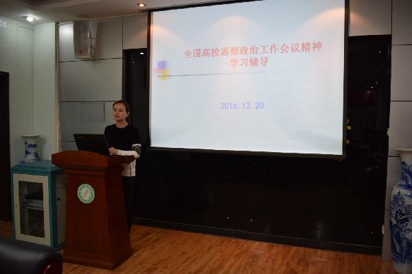 (思政部)12月13日下午,思政部举办学习贯彻习近平总书记在全国高校思想政治工作会议上讲话精神的专题研讨会,特邀校党委副书记熊冬梅与会指导,思政部专兼职教师参加研讨。会议由思政部主任桑利娥主持。 老师们集体学习讨论习近平重要讲话 首先,桑利娥老师带领大家全面学习了习近平总书记在全国高校思想政治工作会议上的讲话精神。随后,老师们围绕习近平讲话展开了热烈的讨论并发表了自己的学习心得。桑利娥老师谈到,习近...