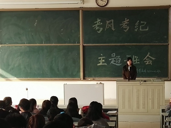 (药学院)2016年12月15日上午,药学院药学本科1420-1422班在教学楼403召开考风考纪主题班会,药学本科1420-1422班全体同学和辅导员王娜娜老师参加了此次会议。 首先由药本1420班高建军同学代表发言,他告诉同学们关于诚信考试和遵守考场纪律的重要性。第二位为药本1421班缑叶静同学代表发言,她十分简洁明了的给大家强调了要遵守考场纪律,以及在四六级考试和期末考试中应该注意的问题。 最后,辅导员王娜娜老师对考风考纪的严肃...
