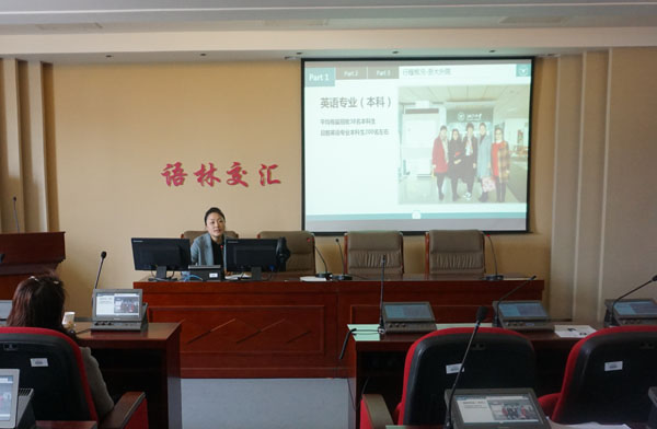 (英语系)2017年3月22日下午,英语系在系报告厅召开了教师外出学习交流会。肖蓉、钱雯、郭子凯、肖钰敏4位老师分别代表我系4次外出学习交流的教师分享了各自的收获与感悟。 首先,由肖蓉老师分享了参加“2016陕西省高等学校大学英语教学学术研讨会”的收获。肖蓉老师就贾国栋教授在会上所做的报告《新时期与科研选题》进行了详细阐述,使我系教师在教学科研方面获益良多。 随后,钱雯老师以《感受浙大》为题,通过精美的PPT、...