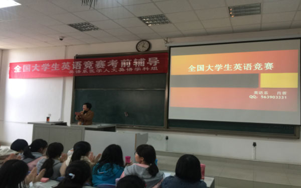 (英语系)全国大学生英语竞赛(National English Competition for College Students,简称NECCS)是经教育部有关部门批准举办的全国唯一的大学生英语综合能力竞赛活动。为了全面提高我校学生英语综合运用能力,推动大学英语教学质量再上新台阶,将我校英语成绩优秀学生送到全省乃至全国舞台上,提升我校知名度,为此英语系教学科与医学人文英语学科组共同组织举行竞赛赛前系列辅导。 3月22日,第一次赛前辅导在教学楼203拉开帷幕...