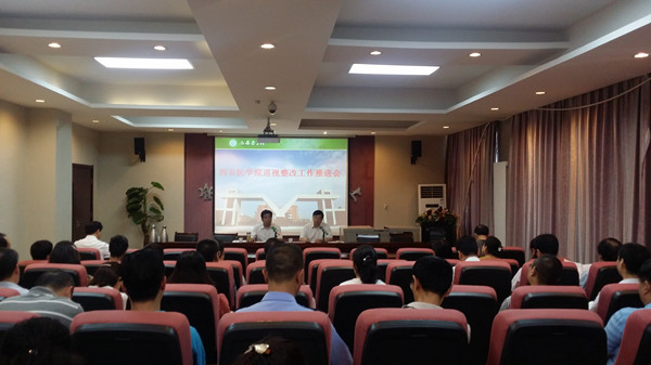 (宣传部)6月22日下午,我校在护理学院学术报告厅召开了省委巡视组反馈意见整改工作推进会,校党委书记、巡视整改工作领导小组组长范兵主持会议并讲话,校纪委书记、巡视整改工作领导小组副组长兼办公室主任吴毅部署安排巡视整改工作,巡视整改工作领导小组办公室全体成员、各行政部门、各院系、附属医院党政主要负责人参加了会议。 会上,吴毅对我校巡视整改工作作了安排部署。他首先对我校巡视整改方案起草过程进行了说明,...