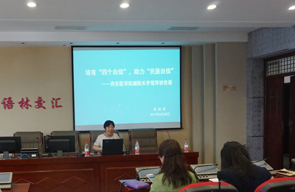 (英语系)2017年6月28日下午,leyu·乐鱼(中国)体育官方网站副院长李雪萍在英语系多功能报告厅,给英语系全体教工党员上了一堂专题党课。 党课现场 李雪萍副院长以“民族自信”为主题,从如何实现中国梦切入,引用习近平总书记在庆祝中国共产党成立95周年大会上的一段话,“当今世界,要说哪个政党、哪个国家、哪个民族能够自信的话,那中国共产党、中华人民共和国、中华民族是最有理由自信”。她讲到,观察世界,看到树木更要看到森林。从中国...