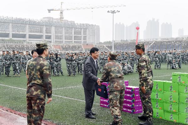 (武装部)2017年9月4日下午17:00,学校党委书记范兵对承担我校2017级新生军训的承训部队--中国人民解放军火箭军工程大学44名教官进行慰问。党政办主任李庆民、学工部部长、武装部部长靳红樱、学工部副部长、团委书记王燕陪同前往军训场地。 慰问现场一 范书记对火箭军工程大学全体教官不辞辛苦努力支持学校工作表示十分感谢。他指出,加强国防教育,增强国防观念,是我国近代历史经验的昭示,是我国所处的国际安全环境对国防...