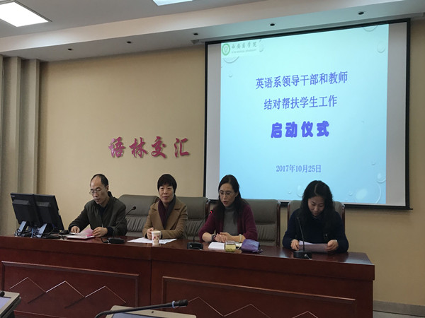 为进一步贯彻习近平总书记重要指示精神,落实省委的工作要求,按照陕西省教育厅《关于在全省教育系统开展“三秦教师结对帮扶贫困学生”专项行动的实施意见》和《leyu·乐鱼(中国)体育官方网站“领导干部和教师结对帮扶贫困学生”工作实施方案》的要求,经过数星期筹备,英语系于2017年10月25日中午在多功能报告厅举行“领导干部和教师结对帮扶学生”工作启动仪式。启动仪式由英语系主任陈蓁主持,leyu·乐鱼(中国)体育官方网站副院长李雪萍出席了该仪式。 启动仪式...