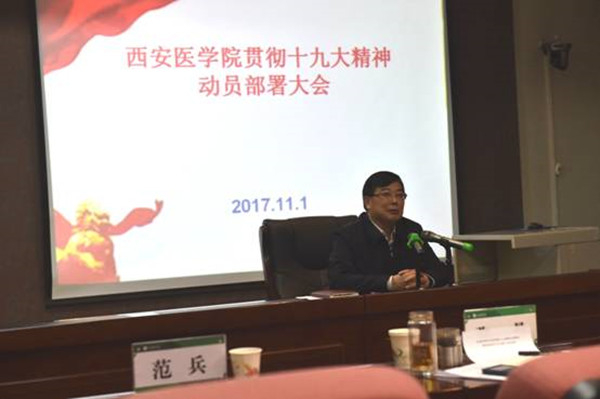 2017年11月1日下午,我校在护理学院学术报告厅组织召开学习宣传贯彻十九大精神动员部署会暨党委理论学习中心组扩大会议。全体党委委员,校本部各党总支书记、各党支部支部书记,副处级以上干部,党委宣传部、思政部全体人员,第一附属医院、第二附属医院党委书记、院长、党委办公室主任参加了会议。会议由党委书记范兵主持。 党委副书记、院长杨帆就全校学习宣传贯彻党的十九大精神作了安排部署。他指出,学习宣传贯彻党的十九...