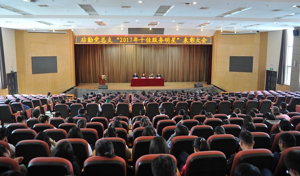 2018年3月23日下午,后勤党总支在学术报告厅举行“十佳服务明星”表彰大会。本次评选结果是由支部民主评议推荐,报后勤党总支审核,最终确定十一位为我校后勤保障工作做出突出贡献的一线工作人员予以表彰。 校党委副书记熊冬梅,组织部部长万家峰出席会议。后勤保障处、校医院全体职工,学生代表200多人参加大会,会议由后勤党总支副书记李伟主持。 会议现场 万家峰部长宣读表彰决定并作了主题为“尊重劳动 尊重服务”的讲话。...