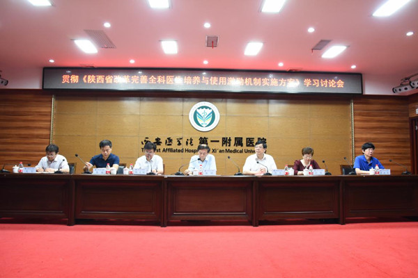 全面提升我校全科医学的培养内涵,助力陕西基层卫生事业发展,7月5日上午,我校在第一附属医院召开学习贯彻《陕西省改革完善全科医生培养与使用激励机制实施方案》学习研讨会,省卫计委副主任陈昭、省卫计委宣传与科技教育处副处长黄斌、我校党委书记范兵、副院长姚文柱、我校第一附属医院院长、全科医学院院长李亚军和全科医学研究所所长弥曼教授出席了本次会议,我校相关处室负责人、全科医学院各教研室主任、师生代表及各基...