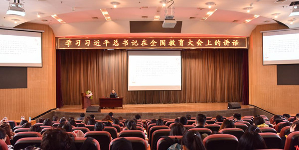为深入学习宣传和贯彻全国教育大会会议精神,11月13日下午,我校在未央校区学术报告厅举办了学习贯彻全国教育大会精神专题报告会。报告会邀请西北大学马克思主义学院院长、2017年度全国高校思想政治理论课教师影响力人物王强教授主讲。我校党委宣传部、学工部、校团委、马克思主义学院全体教师和学校各党支部书记、专兼职辅导员、学生代表共计400余人聆听了报告。报告会由我校马克思主义学院院长桑利娥主持。 报告会现场 报告...