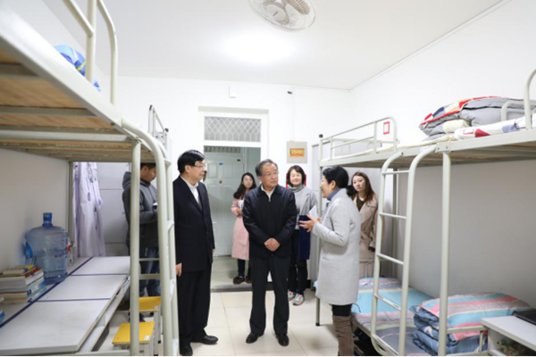 11⽉12日,省高教工委第二督导组组长、西安邮电大学原党委书记崔智林在参加了我校领导班子民主生活会后深入学生公寓对我校学生工作“五进公寓”工程开展情况进行指导,党委书记范兵、院长杨帆、党委副书记熊冬梅、学工部、后勤处等相关部门负责人陪同。 崔智林一行在临床医学院调研“五进公寓”工程 崔智林走访了临床医学院、医学技术学院的“五进公寓”工作。在临床医学院,崔智林认真听取了负责老师对“五进公寓”工程建设工...