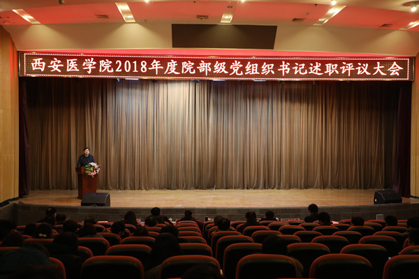 1月3日下午,我校在未央校区学术报告厅召开了2018年度院部级党组织书记述职评议大会。校党委委员,各党总支书记和附属医院党委书记,校本部处级干部、人大代表、政协委员,党员师生代表参加了会议。会议由校党委副书记、院长杨帆主持。 述职评议大会现场 会上,16个党总支书记、4所附属医院党委书记依次进行了述职,主要围绕学习贯彻习近平新时代中国特色社会主义思想和党的十九大精神、抓基层党组织建设和落实基层党建工作重...