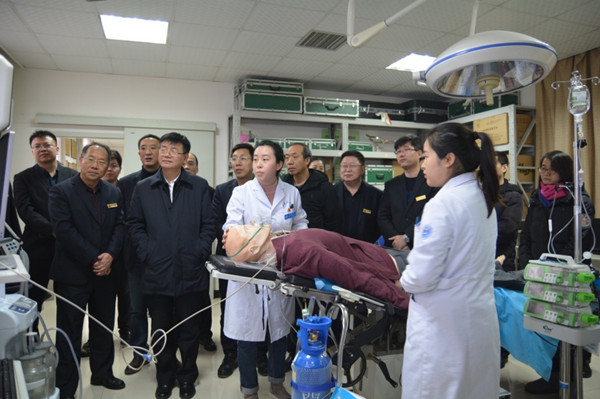 1月10日上午,我校副院长姚文柱赴第二附属医院调研学科建设、精准扶贫等相关工作,党政办张雨新副主任、党政办段新虎调研员、研究生处周连锁副处长等陪同调研。 姚文柱一行首先参观了二附院教学实训中心、眼科、体检科、医学影像远程会诊中心、门诊部、医学美容科和医院院史文化走廊,观摩了麻醉模拟训练和医学影像远程会诊系统操作。 姚文柱副院长一行观摩麻醉模拟训练 姚文柱副院长一行参观医院院史文化走廊 姚文柱副...