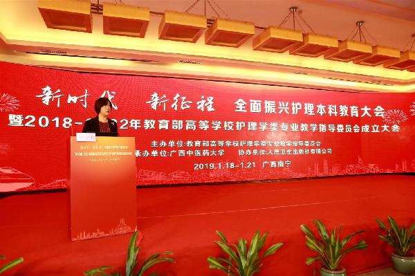 2019年1月18日至21日,由教育部高等学校护理学类专业教学指导委员会主办、广西中医药大学承办、人民卫生出版社有限公司协办的“新时代、新征程,全面振兴护理本科教育大会暨2018-2022年教育部高等学校护理学类专业教学指导委员会成立大会”在广西南宁召开。教育部高教司农林医药处高斌副处长,国家卫生健康委员会医政医管局焦雅辉副局长,护理与康复处孟莉副处长,教育部临床医学专业认证工作委员会主任委员、教育部高等学校护...