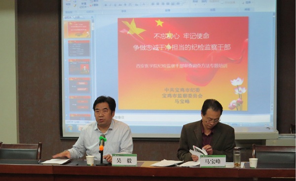 5月9日下午,校纪委在未央校区护理学院报告厅召开纪检监察干部培训会,校纪委委员、各党总支书记、各附属医院纪委书记、各党总支纪检委员与各党支部纪检委员、纪委办公室和监察处全体工作人员参加了培训会,会议由校纪委书记吴毅主持。 会议现场 会上,宝鸡市监察委员会委员马宝峰应邀作了题为《不忘初心牢记使命——争做忠诚干净担当的纪检监察干部》的报告。马宝峰委员从《监察法》学习指导、违纪违法与犯罪、反腐败工作新形...