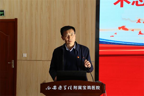 为总结各附属医院主题教育进展成效,推广工作经验和典型事例,营造主题教育浓厚氛围,10月29日下午,我校在附属宝鸡医院召开附属医院“不忘初心、牢记使命”主题教育现场交流会,校党委委员、副院长张越林出席本次会议并讲话。校纪委办公室主任吴光荣,一附院党委书记吴戈、二附院党委副书记张允东、附属宝鸡医院领导班子全体成员、附属汉江医院党委书记欧阳平以及各附属医院部分党支部书记、支委、相关职能科室负责人70余人参...