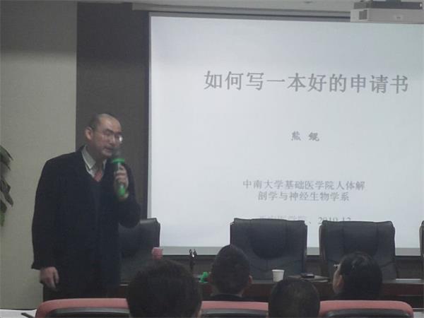 为做好2020年国家自然科学基金申报工作,调动广大教师、科研人员申报积极性,12月30日下午,科技处在护理学院报告厅举行了2020年国家自然科学基金申报培训会,邀请中南大学基础医学院人体解剖学与神经生物学系主任熊鲲教授做申报经验交流。会议由科技处副处长苟兴春主持,各二级单位管理及项目申报教师参加会议。 首先,科技处苟兴春副处长给大家介绍了熊鲲教授在学术领域和国科金申报工作中取得的成绩,对熊教授的到来表示热烈...