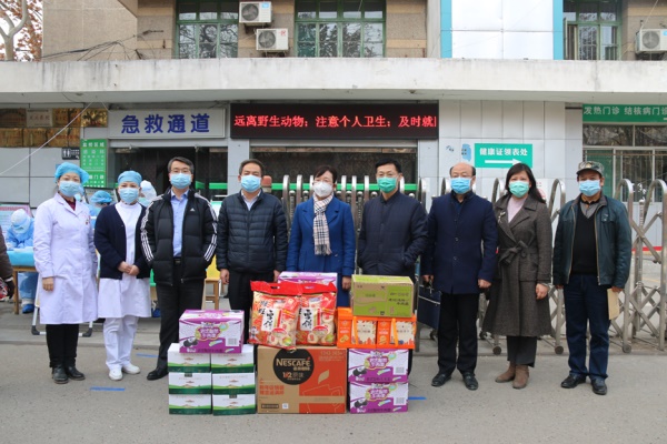 2月20日上午10点,陕西国药器械医学诊断试剂有限公司向我校捐赠防疫物资仪式在未央校区行政楼广场举行。 在全国上下同心协力抗击疫情的关键时刻,我校九七级校友、陕西国药器械医学诊断试剂有限公司副总经理张建党代表企业向我校捐赠次氯酸钠、医用酒精、医用手套、免洗手消毒液共计24桶/箱。我校副院长黄保强、党政办主任崔军海、后勤保障处处在李伟、保卫处处长金英参加捐赠仪式。 副院长黄保强参加捐赠仪式并向企业颁发捐...