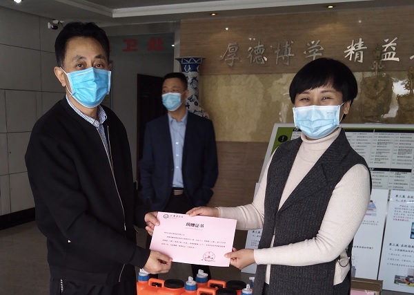 4月7日上午,正值疫情防控进入攻坚阶段、学校行政人员返校之际,我校药学专业2002级优秀创业学子、陕西云能仪器设备有限公司销售经理娄莎一行3人向学校捐赠医用口罩1500个、消毒液1箱、速干皮肤消毒液1箱、乳胶手套10盒及消毒喷雾器6个等防疫物资,支持母校新冠疫情防控工作。捐赠仪式在未央校区举行,副院长黄保强及校企双方代表出席了捐赠仪式。 颁发捐赠防疫物资证书 捐赠防疫物资仪式 黄保强副院长代表学校向陕西云能仪器...