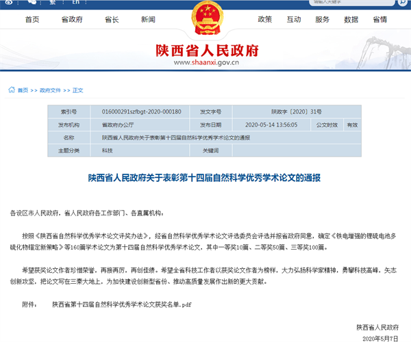 近日,陕西省人民政府发布《关于表彰第十四届自然科学优秀学术论文的通报》(陕政字〔2020〕31号),我校基础与转化医学研究所苟兴春教授团队和第一临床医学院、第一附属医院李蓉博士团队喜获陕西省第十四届自然科学优秀学术论文三等奖。希望获奖论文作者珍惜荣誉,再接再厉,再创佳绩。希望我校科技工作者以获奖论文作者为榜样,大力弘扬科学家精神,勇攀科技高峰,矢志创新攻坚,把论文写在三秦大地上,为加快我校一流学院建...