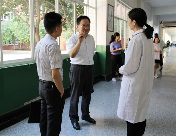 9月7日,教务处组织校领导和校教学督导、全体处级干部、教务处工作人员对开学第一天第一节课的教师授课情况、课堂秩序、教室卫生、多媒体教室使用及教师到岗和学生出勤等情况进行了全面检查和指导。 党委书记刘岭与预防本科1725、1726、1727班的同学们随堂听了白丹老师讲授的《耳鼻咽喉-头颈外科学》课,课后与教师进行了深入交流,对其上课情况进行了点评和指导,并指出要进一步加强教学过程管理,做好各项服务保障工作,教学...