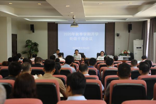 9月6日上午,我校在未央校区护理学院报告厅召开2020年秋季学期开学处级干部会议,安排部署秋季学期重点工作。全体校领导,校本部各部门党、政负责人,各附属医院行政负责人参加了会议。会议由校党委书记刘岭主持。 会议现场 会上,党委副书记、院长杨帆从以案促改、招生录取、教师培训、专业评审、科研成果、信息化建设等方面对暑期工作情况进行了总结回顾,给予了充分肯定,并代表学校向大家表示感谢。关于2020年秋季学期重点...