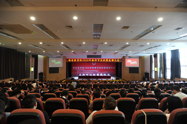 9月10日下午,我校在未央校区学术报告厅隆重举行庆祝2020年教师节暨表彰大会。全体校领导、天士力控股集团有限公司集团总部培训中心总监翁娣萍女士出席大会。会议由党委书记刘岭主持。 大会现场 大会在庄严的国歌声中拉开序幕。会上,65名新入职教师面对国旗、庄严宣誓,声音浑厚有力、跌宕起伏,深深地震撼着会场的每一个人,表达了新进教师爱岗敬业、乐于奉献的铿锵决心。 今年教师节的主题是“立德树人奋进担当,教育扶贫托...