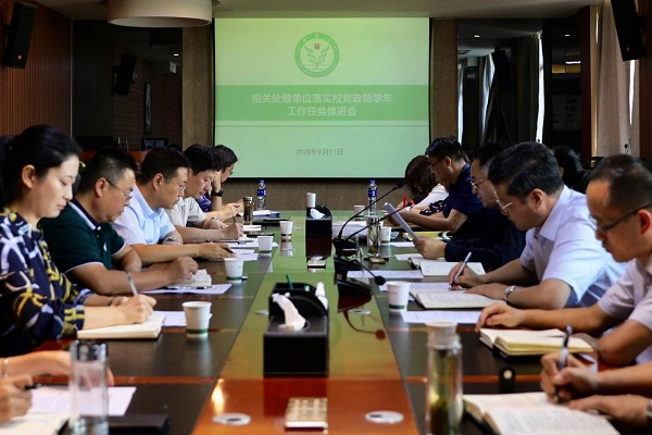 9月17日下午,副院长黄保强在行政楼第二会议室召集分管处级单位召开新学期落实校党政新学年工作任务推进会。信息技术处、基建处、体育部、公共卫生学院、图书馆等部门全体处、科级干部,附属宝鸡医院主要领导参加了会议。会议专门邀请校党委副书记、纪委书记、监察专员沙德忠,纪委副处级干部吴光荣出席会议进行指导。 会议现场 会上,黄保强副院长首先传达了学校新学期处级干部会议精神,重点强调杨帆院长提出一要做好学校“...