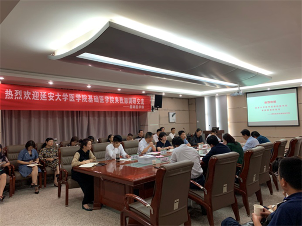 9月18日,延安大学医学院副院长、基础医学院院长杨彦玲偕教务、行政领导及各教研室主任等一行十六人,就教学管理、临床专业认证等问题,到我校基础医学部调研交流。我校党委委员、副院长和新盈、教务处处长苏兴利出席了此次活动。基础医学部党政和管理科室全体干部、各教研室(中心)主任参加了此次交流。调研交流会由基础医学部副主任汪洋主持。 和新盈副院长致欢迎辞 会上,和新盈副院长代表学校对延安大学医学院一行表示热...