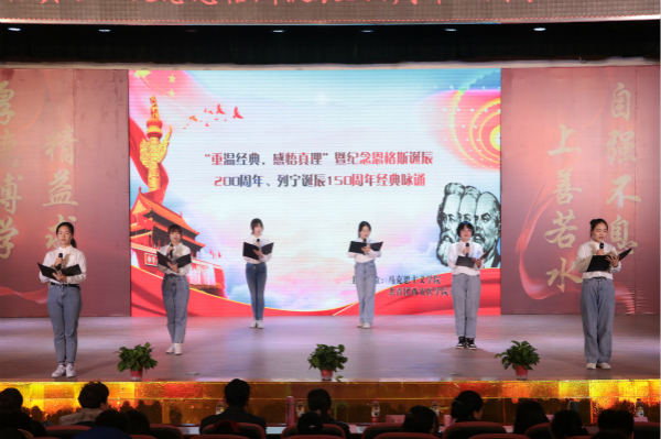为纪念恩格斯诞辰200周年、列宁诞辰150周年,11月30日晚上,马克思主义学院与校团委在学术报告厅举行了“重温经典,感悟真理”为主题的经典咏诵活动。本次经典咏诵活动依托《马克思主义基本原理概论》课程,以全校各学院各专业2019级学子为主体,大家齐聚一堂,吟诵自己心中最美的经典诗篇,向伟大的革命先行者们致敬。校党委副书记熊冬梅出席活动并发表讲话。参加活动的还有校党委宣传部副部长刘军林、临床医学院党总支副书记...