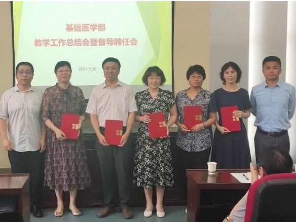 6月30日,基础医学部“部教学督导聘任会暨2020-2021学年第二学期教学工作总结会”在未央校区部报告厅召开。校党委委员、副校长李雪萍出席会议,基础医学部副主任汪洋、副书记张光伟及基础医学部全体无课教师参加会议。会议由基础医学部副主任李新华主持。首先,基础医学部党政领导班子为部第二届教学督导组成员姜凤良教授、景晓红教授、成凡副教授、郑慧媛副教授和闫爱丽副教授举行聘任仪式并颁发聘任证书。同时,对第一届部教....