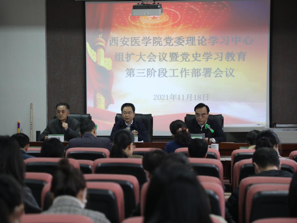 11月18日,我校在未央校区护理与康复学院报告厅召开党委理论学习中心组扩大会议暨党史学习教育第三阶段工作部署会议,专题学习党的十九届六中全会精神。全体校领导出席会议。会议由党委副书记、校长杨帆主持。党委委员、副校长黄保强安排部署学校党史学习教育第三阶段工作。他指出,学习贯彻党的十九届六中全会精神是当前一项重大政治任务,学校党史学习教育第三阶段的工作重点要把深化党史学习教育同学习党的十九届六中全会精....