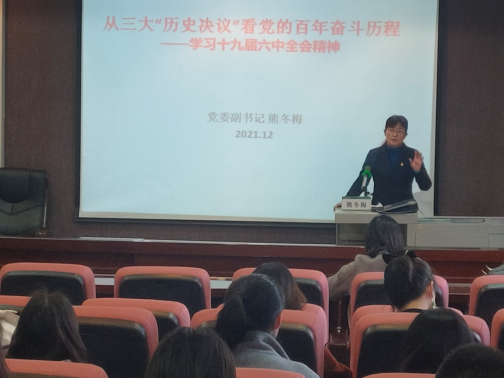 12月1日下午,公共卫生学院党总支、党政办支部、组织工会支部联合召开会议,专题传达学习贯彻党的十九届六中全会精神。公共卫生学院党总支书记石明娟主持会议,党委副书记熊冬梅作题为《从三大“历史决议”看党的百年奋斗历程》的宣讲。熊冬梅副书记分别从“三大历史决议”的历史背景、主要内容、历史意义和用大历史观读懂党的百年历史四个方面作了系统阐述。她指出这次全会是我们党在走过百年光辉历程的重大时刻,站在“两个一...