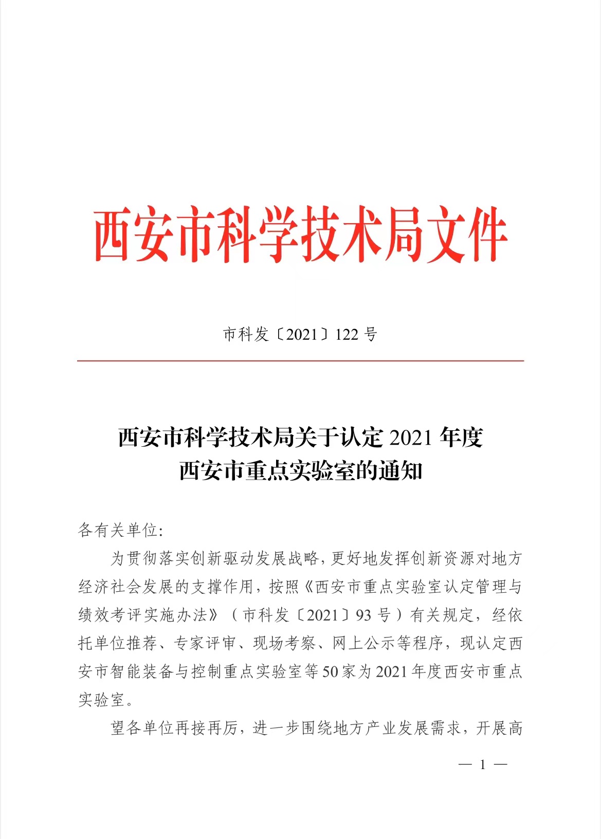 西安市科学技术局近日发布了《关于认定2021年度西安市重点实验室的通知》(市科发〔2021〕122号),经学校科技处组织遴选、推荐,西安市科技局组织专家评审、现场考察、网上公示等程序,我校药学院秦蓓教授牵头申报的西安市多靶协同抗高血压创新药物研制重点实验室,基础与转化医学研究所曹慧玲教授牵头申报的西安市心血管代谢疾病基础与转化重点实验室同时获批建设,本次获批的2个重点实验室是继我校去年首次获批西安市重点实....