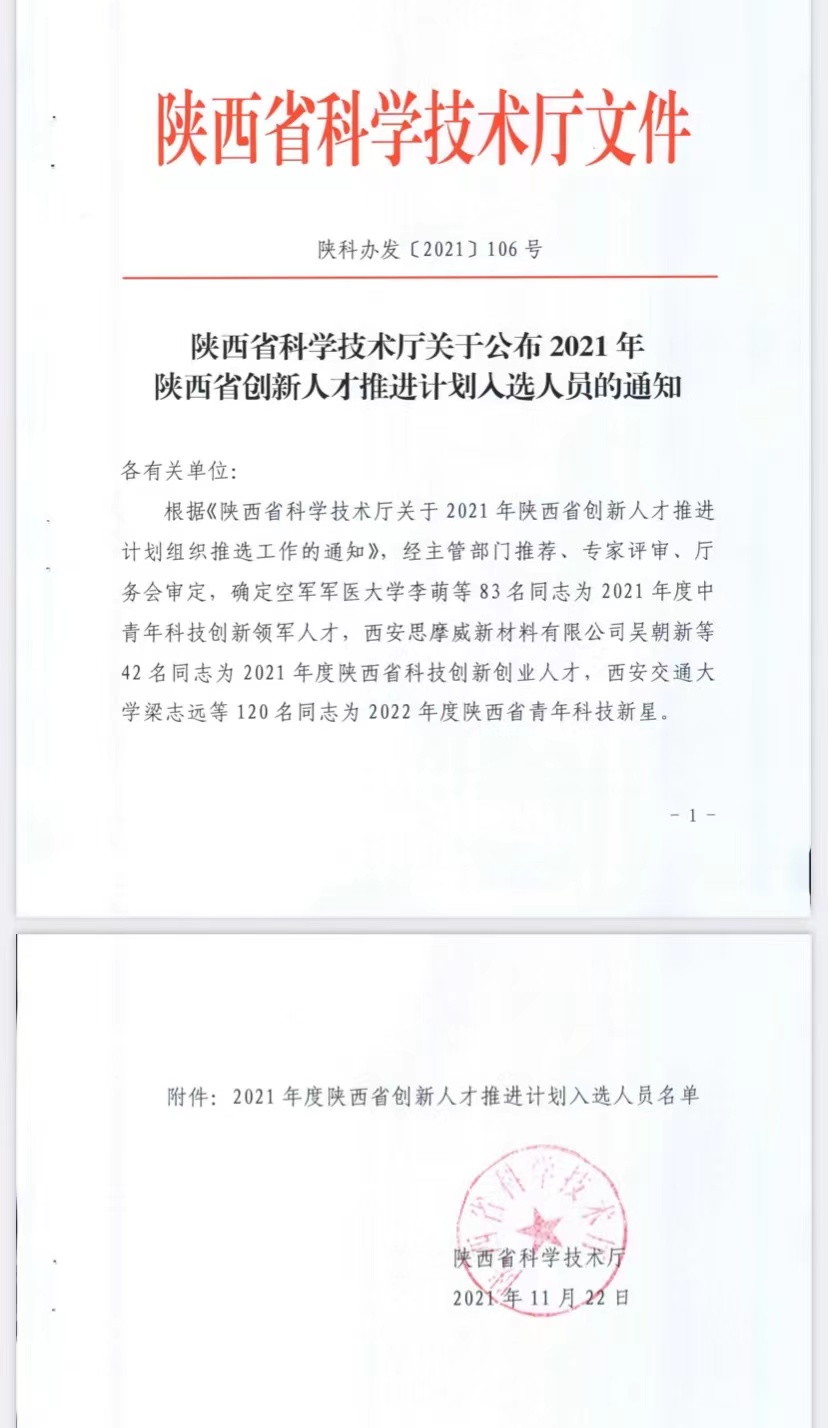 近日,陕西省科技厅印发了《关于公布2021年陕西省创新人才推进计划入选人员的通知》(陕科政发[2021]106号),我校基础与转化医学研究所余琦教授入选获得“陕西省中青年领军人才”称号。陕西省创新人才推进计划旨在通过创新体制机制、优化政策环境、强化保障措施,扶持和造就一批高水平优秀创业人才、科技领军人才和重点科技创新团队,打造一批创新人才培养示范基地,加强高层次创新型科技人才队伍建设,引领和带动各类科技人才...