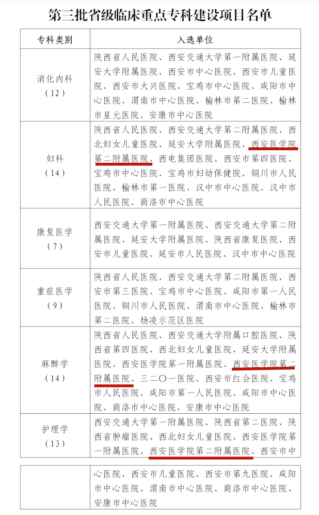 近日,在陕西省卫生健康委公布的第三批省级临床重点专科建设项目公示通知中,我校第二附属医院妇科、麻醉学、护理学三个专业入选第三批省级临床重点专科建设项目。临床重点专科建设是公立医院高质量发展最重要的基础,“十四五”期间国家将以重大疾病诊疗需求为导向,建设临床重点专科群,以专科发展带动诊疗能力全面提升。第二附属医院始终坚持以学科建设为医院高质量发展的根本,集中资源实施“重点学科建设工程”,推动省级....