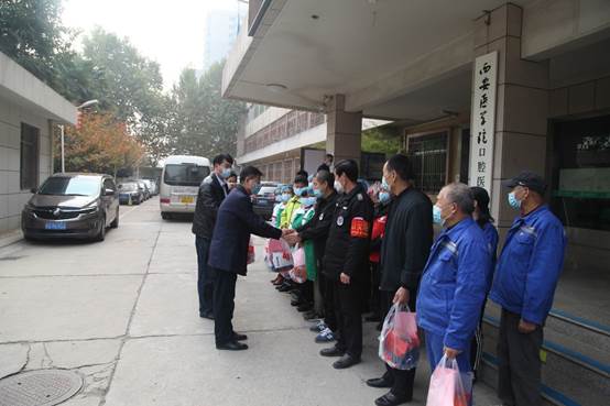 11月7日上午,党委副书记姚文柱来到高新校区,代表学校走访慰问奋战在疫情防控一线的后勤保障和老旧小区改造项目施工人员,对他们坚守岗位、积极配合学校疫情防控工作表示感谢,并送上慰问品。姚文柱慰问高新校区疫情防控一线工作人员走访慰问中,姚文柱对防控一线工作人员舍小家顾大家、迎难而上、辛苦奋战的精神以及为守护师生平安健康做出的积极贡献给予充分肯定。他叮嘱大家一定要遵守疫情防控政策规定,严格按照上级和学校...