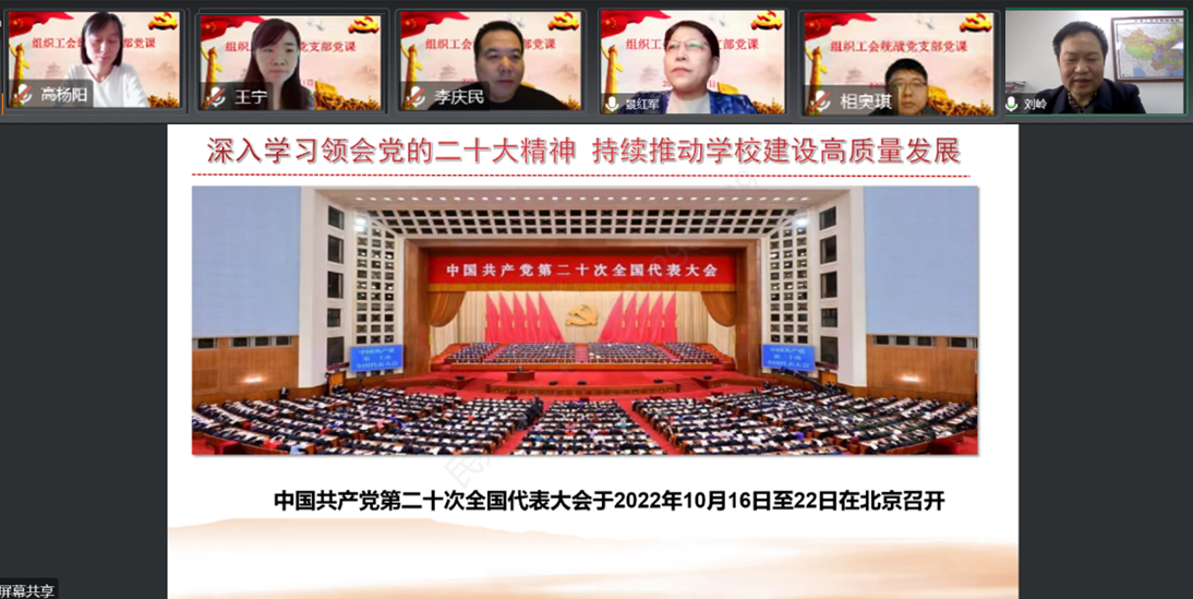 12月1日上午,校党委书记刘岭通过视频会议,以“深入学习领会党的二十大精神 持续推动学校建设高质量发展”为题,为组织工会统战支部讲授专题党课。党课由校工会主席、组织工会统战党支部书记景红军主持,组织工会统战支部全体党员参加学习。刘岭讲授党课刘岭从七个深刻领会和认识对党的二十大精神进行了深入浅出的讲解,尤其是对党的二十大报告中关于教育、卫生事业发展提出的新要求进行了详细解读。结合实际提出了我校面临的....