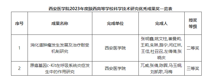 4月18日,陕西省教育厅发布《关于表彰2023年度陕西高等学校科学技术研究优秀成果奖的通报》(陕教函〔2023〕366号),本年度我校获批陕西高校科学技术奖2项,其中二等奖1项、三等奖1项。我校第一附属医院张明鑫教授团队成果《消化道肿瘤发生发展及治疗耐受机制研究》,获批2023年度陕西高等学校科学技术研究优秀成果二等奖。该项目历时5年,发表中英文相关文章34篇,其中SCI论文16篇,高水平学术文章7篇。详细阐明了消化道肿瘤中...