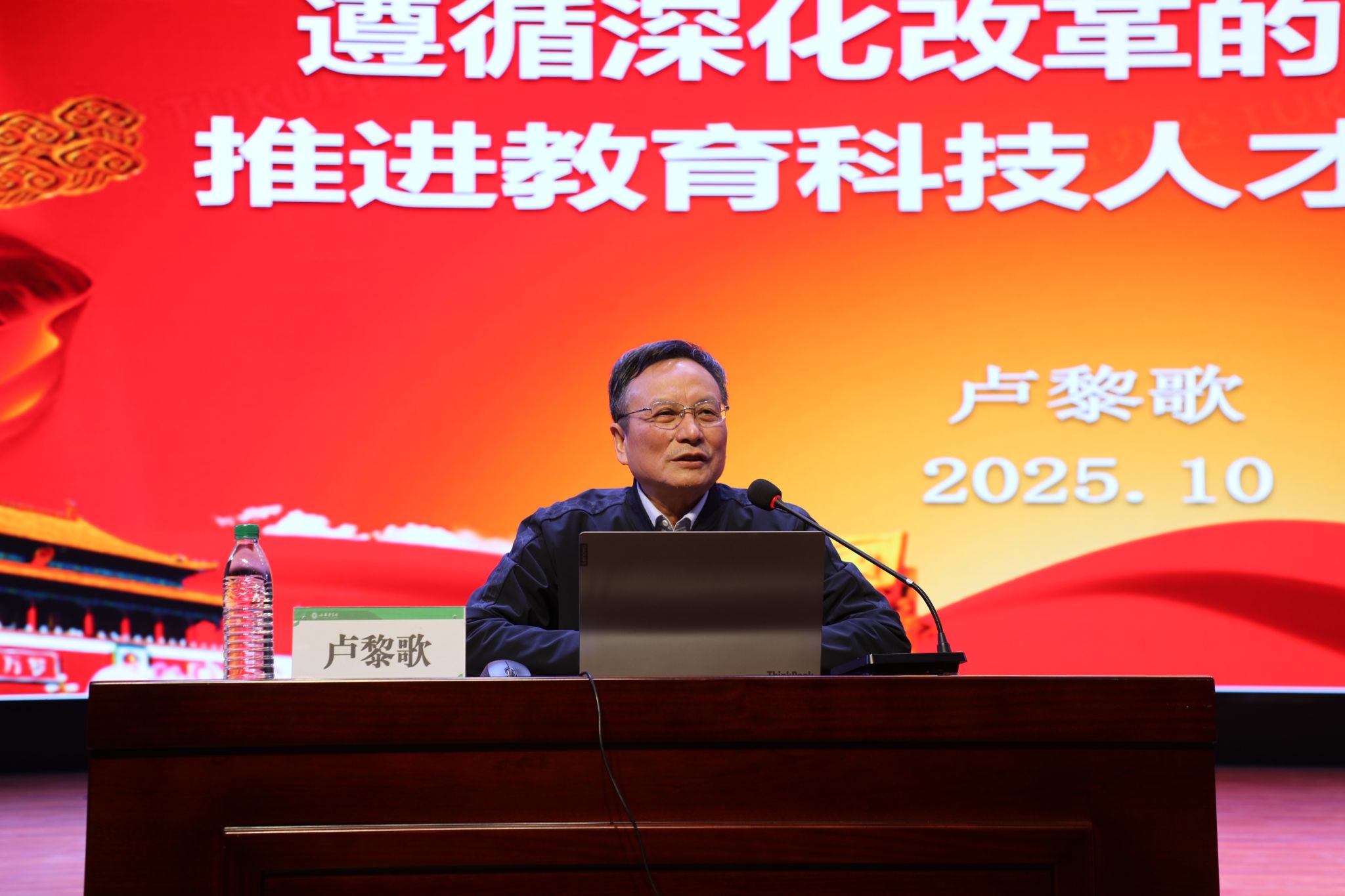 10月28日,我校2025年秋季学期干部培训系列专题讲座第二讲在未央校区举行。西安交通大学马克思主义学院二级教授卢黎歌受邀作专题报告。全体在校校领导出席。党委副书记熊冬梅主持会议。卢黎歌以《遵循深化改革的六大原则 推进教育科技人才体制改革》为题,紧紧围绕教育科技人才体制改革这一核心议题,从“全面深化改革的总目标与系统部署”“深化改革的六大原则”“教育、科技、人才是中国式现代化的基础性、战略性支撑”“统筹...
