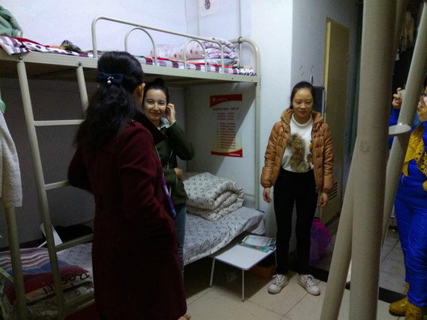 (学工部)12月24日晚,正是周末休息时间,我校党委副书记熊冬梅带领当日值班的英语系主任陈蓁、学工部学生科长徐景彩、新疆内派教师安顺凤、白晓昱一行五人走访学生宿舍,看望师生。 熊冬梅副书记一行来到清真食堂,她详细查看和询问了目前清真食堂饭菜品种、质量及卫生情况,并与正在就餐的少数民族学生亲切交谈,询问他们的学习和生活适应情况,给他们带去学校的关心和问候。随后,她来到学生宿舍内,了解同学们在生活、学习...