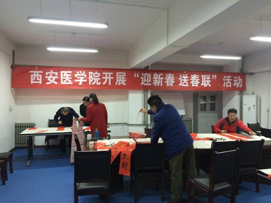 (宣传部)爆竹声中一岁除,春风送暖入屠苏,千门万户曈曈日,总把新桃换旧符。在2017年新春佳节来临之际,1月24日,由党委宣传部、校工会、书法协会、含光校区管理处联合组织的“迎新春 送春联”活动在含光校区教职工活动中心顺利举行。书法协会10位老师一整天挥毫泼墨,为教职工书写春联,送去了新春深情地祝福! 上午九点,校书法协会会长赵世功和会员们就开始书写,将“一帆风顺吉星照,万事如意福临门”“喜居宝地千年旺,...