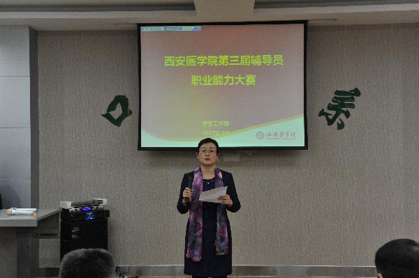(学工部)2017年3月16日上午,我校第三届辅导员职业能力大赛决赛暨颁奖仪式在口腔医学系学术报告厅落下帷幕。校党委副书记熊冬梅出席大赛并作重要讲话。中共陕西省委高教工委学工部部长田民正及部分高校学工部部长出席大赛并担任评委。学工部全体工作人员、各院(系)党总支书记、学生科长、团总支书记及全体辅导员现场观摩了比赛。 党委副书记熊冬梅在致辞中指出,辅导员职业能力大赛是全面贯彻落实习近平总书记系列重要讲话...